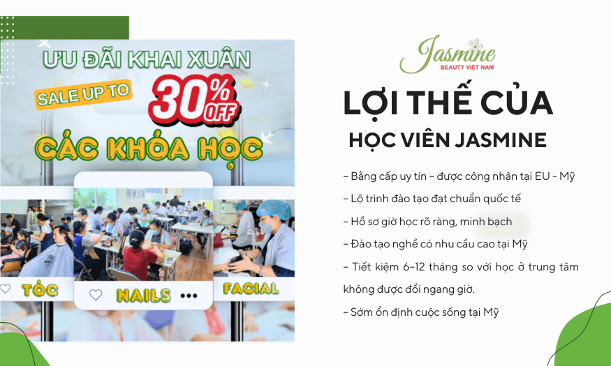 Hiểu được những trăn trở của học viên khi bắt đầu một hành trình mới, Jasmine Beauty School Vietnam luôn dành những sự hỗ trợ đặc biệt nhất cho giai đoạn khởi đầu năm mới. Chúng tôi tin rằng, một sự tiếp sức nhỏ về tài chính và công cụ sẽ là động lực lớn để bạn vững tin hơn với lựa chọn của mình.