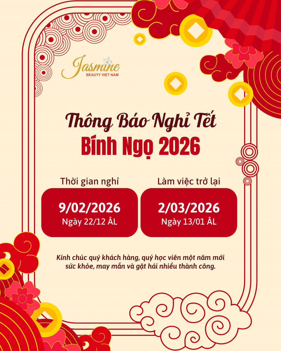 Jasmine Beauty School Việt Nam trân trọng thông báo đến Quý khách hàng và Quý học viên lịch nghỉ Tết Nguyên Đán Bính Ngọ 2026 như sau: