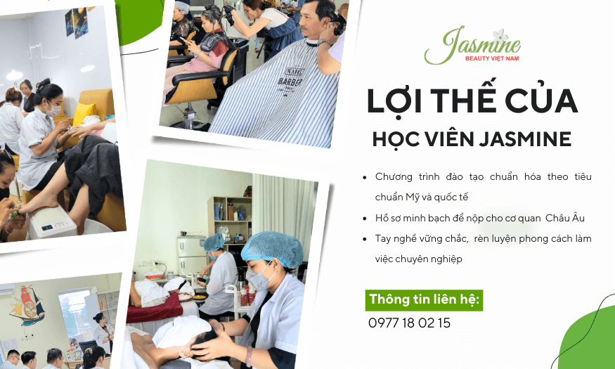 Với định hướng đào tạo nghề thẩm mỹ gắn liền với chuẩn quốc tế, Jasmine Beauty School Việt Nam được nhiều học viên lựa chọn khi có kế hoạch sang Mỹ làm việc hoặc định cư. Chương trình đào tạo tại Jasmine chú trọng cả tay nghề lẫn giờ học hợp lệ, giúp học viên có thể đổi ngang giờ học khi sang Mỹ, từ đó đăng ký thi license sớm và không phải học lại từ đầu.